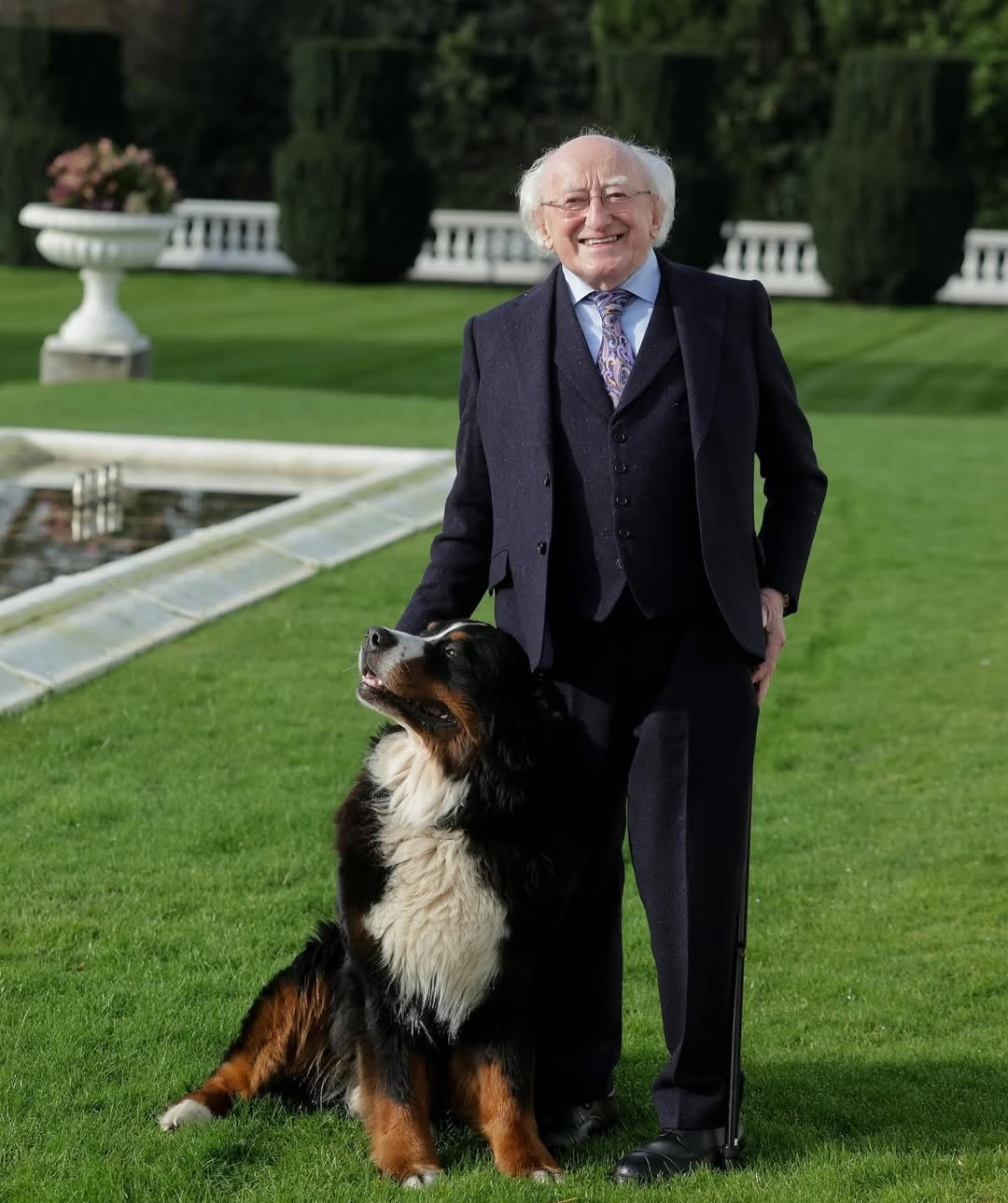 Misneach, whose name fittingly means “courage” in Irish, has also become a familiar face to many over the years. Known for his calm temperament and regal presence, the handsome Bernese Mountain Dog has been by the President’s side through countless public appearances and quiet reflective moments alike.